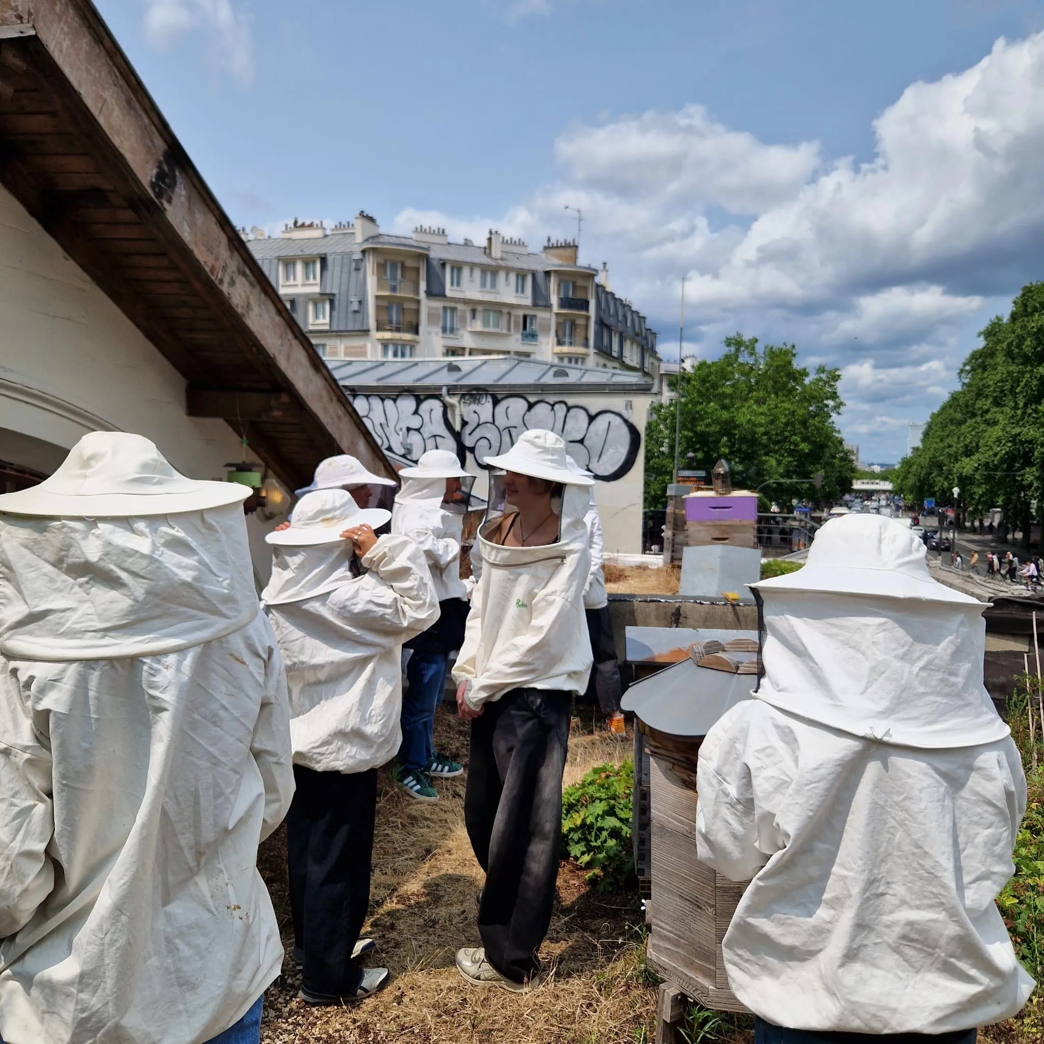 Journées Nationales de l’Agriculture in Paris: introduction to beekeeping (left); hands-on experience of sheep farming at the Young Farmers’ stand (right).