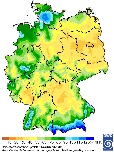 - Function: Farmers can view a graphical representation of the current soil moisture in Germany here. The map shows colour-coded deviations from the normal value and provides a review of the soil moisture development over the past 12 months.