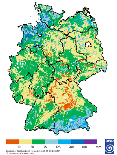 The forecasts are a useful guide, particularly regarding current soil conditions. The further you look into the future, the more uncertain it becomes. Especially when it comes to seasonal estimates over several months, the forecast should be considered more as a trend. Since actual soil conditions can vary on a small scale depending on the location, it is advisable to combine personal observations with the analysis and forecast data.”