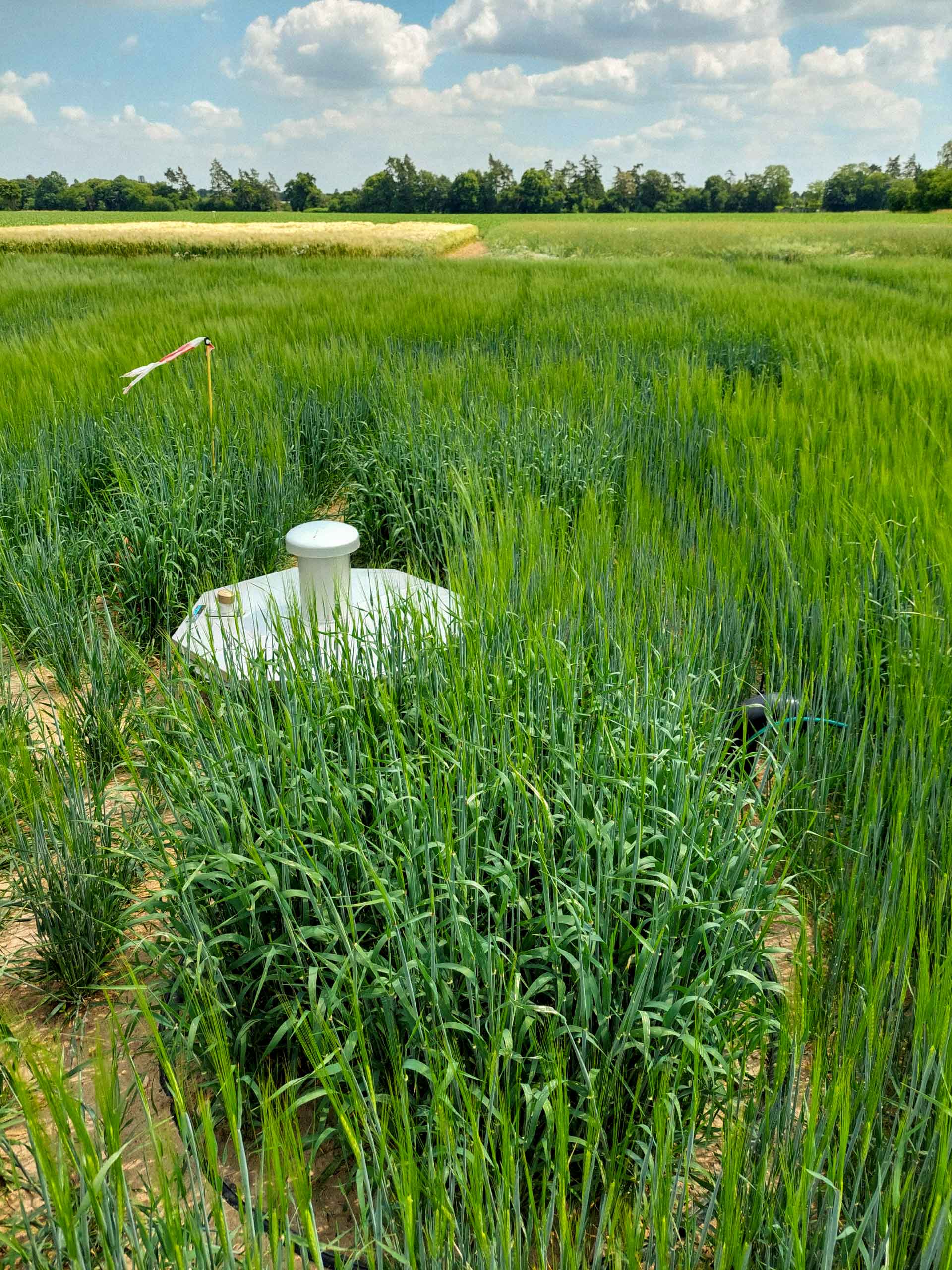 By combining data from measurement stations and model calculations. The German Weather Service operates a network of 20 measurement stations in Germany that continuously provide data on moisture at various soil depths. At these stations, probes are buried at depths ranging from 10 to 90cm. They record the water content. These measurements are used to calibrate a soil moisture model that calculates values for the entire federal territory. The model incorporates further data like precipitation, temperatures, and evaporation rates, over 70 different soil types, and several agricultural crops or forest tree species. The calculation is performed on a 1x1km grid, allowing us to derive a daily updated simulated soil moisture condition for each point in Germany.