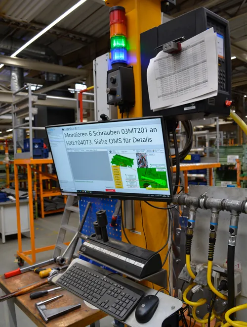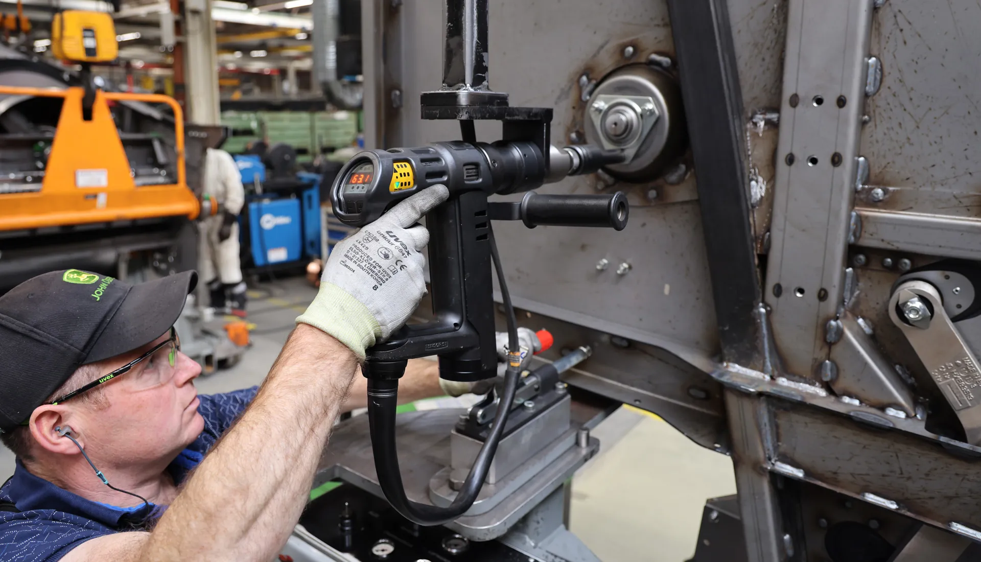 We use a range of advanced tools for assembly, error detection, and documentation. One of the most important is JDAAT (John Deere Assembly Assist Tool), software program which guides operators through every step. It monitors torque, displays work instructions, highlights special features of each machine and confirms successful completion with a green signal. Camera systems track each step, ensuring precision.
